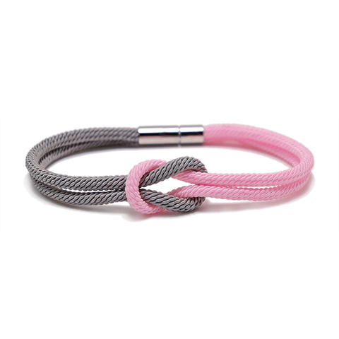 Pulsera de cuerda de sarga HCC002, brazalete de la amistad de la suerte gris y rosa, doble nudo, hecho a mano, mejor amigo, regalo