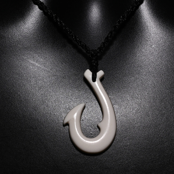 GX003 Handmade Carved Yak Bone Fish Hook Pendant New Zealand Maori Tribal Jewelry for Women Men's Sea Fishing Choker Gift