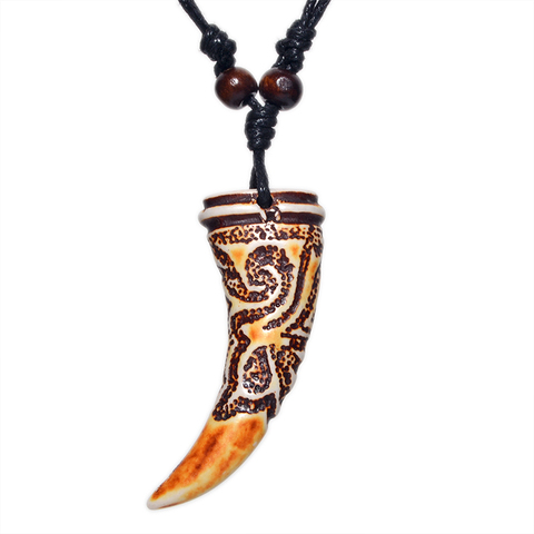 FX009 collana etnica retrò avorio che intaglia modello decorativo ciondolo imitazione di Yak osso amuleto corda ispirata Africa tribale